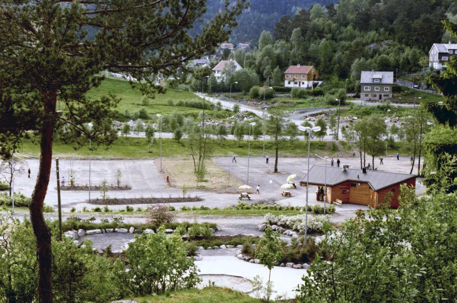 Lunghaugparken fotografert 1. juni 1980. Fotograf: Ukjent. Arkivet etter Kom.avd. fritid, kultur og kirke, Bergen Byarkiv.